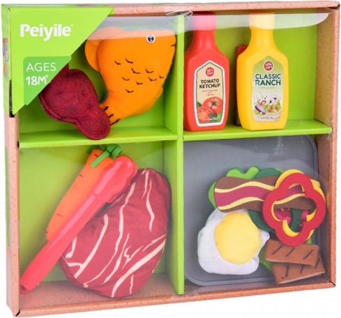 Set de cuisine souple – aliments en tissu avec steak, poisson et accessoires