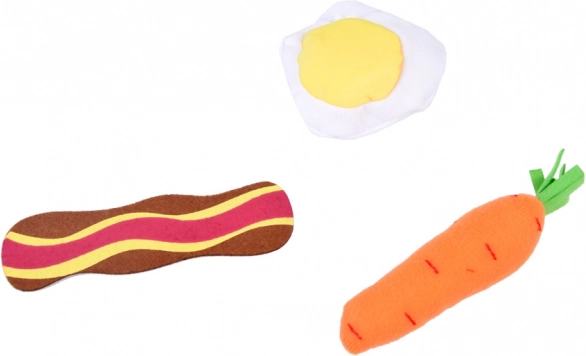 Du steak et du poisson aux œufs et au bacon, jusqu’à la tomate, l’oignon, la salade, la carotte et les poivrons – le set favorise la découverte des aliments et d’une alimentation équilibrée par le jeu.