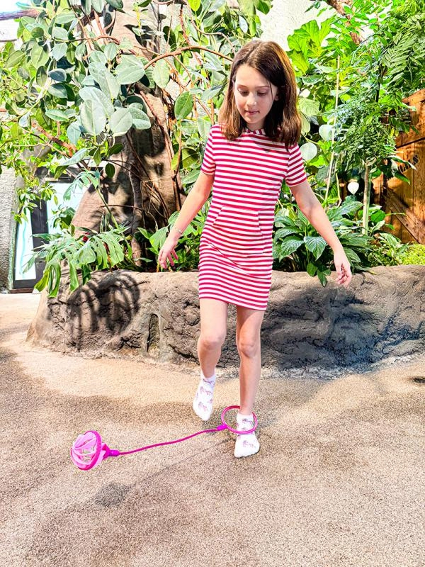 Le Sporto saut à la cheville est un jouet ludique qui vous maintient actif. Il suffit de passer l’anneau autour de la cheville, de le faire tourner et de commencer à sauter. Plus vous enchaînez de sauts, mieux vous vous sentirez et plus vous vous amuserez.