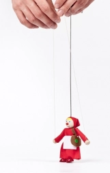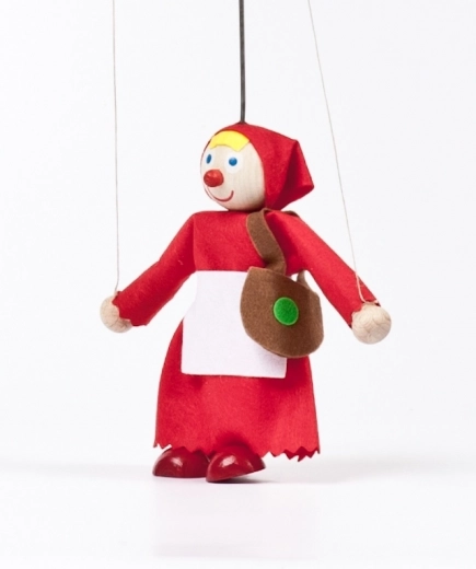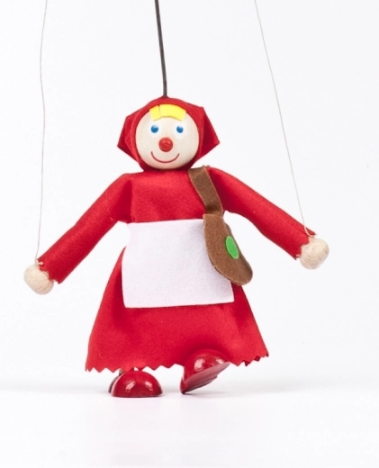 Charmante marionnette du Petit Chaperon rouge de l’atelier GERLICH, qui ravira petits et grands conteurs. Fabriquée à la main en bois et tissu, hauteur 12 cm (sans tige de guidage), avec bras articulés sur fils pour une manipulation facile. Idéale pour le théâtre de contes, le développement de l’imagination et de la motricité fine.