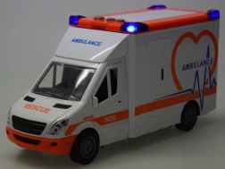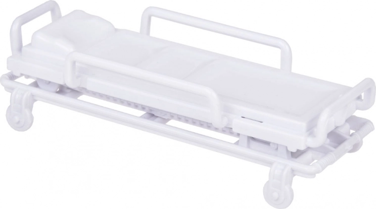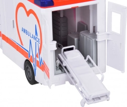 L'ambulance a portes latérales et arrière ouvrantes et une partie de toit amovible qui permet un accès facile à l'intérieur détaillé comme le volant, le tableau de bord et les sièges. Le paquet comprend également un brancard amovible, ajoutant plus de possibilités de jeu.