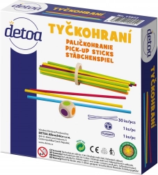 Le jeu Tyčkohraní propose une version rafraîchie du mikado classique. Les baguettes en bois colorées au toucher lisse et l’anneau robuste invitent à y rejouer encore et encore. Lancez le dé, choisissez la couleur et retirez prudemment la baguette correspondante pour que l’anneau en bois ne touche pas la table – des règles simples pour un plaisir étonnamment palpitant.