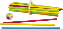 - Contenu de la boîte : 30 baguettes colorées, 1 dé coloré, 1 anneau en bois