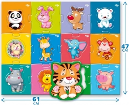 Une fois assemblé, le puzzle mesure 61 x 47 cm, une taille idéale pour jouer au sol ou sur une table. Une excellente manière de faire découvrir aux enfants les animaux du monde entier.