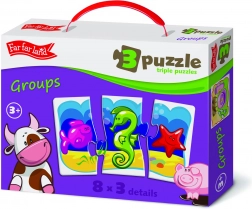 Découvrez le monde du fun avec les Far Far Land puzzle trio, une nouvelle collection de 8 images qui feront rire les enfants et les amuseront en assemblant des images de 3 pièces.