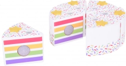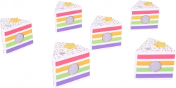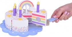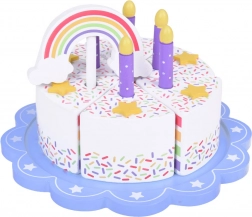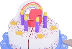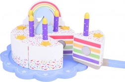 Au sommet du gâteau se trouve un arc-en-ciel coloré amovible, qui apporte une touche de magie à l’ensemble. Chaque part dispose d’un emplacement pour une bougie, ce qui en fait un choix idéal pour jouer à la fête d’anniversaire.
