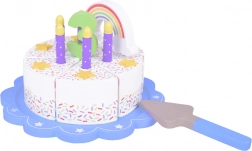 Le gâteau est fabriqué en bois de qualité, garantissant sa durabilité et sa sécurité pour le jeu des enfants.