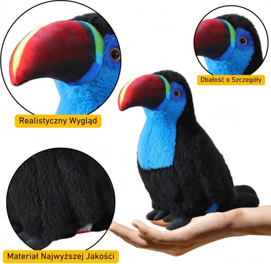 Ce toucan allie douceur, qualité et design captivant. Le plumage noir avec des accents bleus et le bec multicolore confèrent à la peluche un aspect fidèle que les enfants adorent immédiatement. Des coutures fines et une fabrication soignée garantissent une longue durée de vie même en cas d’utilisation quotidienne.
