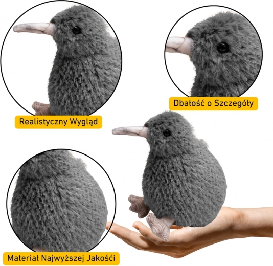 Adorable oiseau kiwi en peluche de 17 cm en matière exceptionnellement douce, il ravira les enfants comme les amoureux des animaux. Il offre un design réaliste, une confection douce et agréable et répond aux normes de sécurité CE et EN71. Idéal comme doudou pour la nuit et décoration stylée de chambre d’enfant.