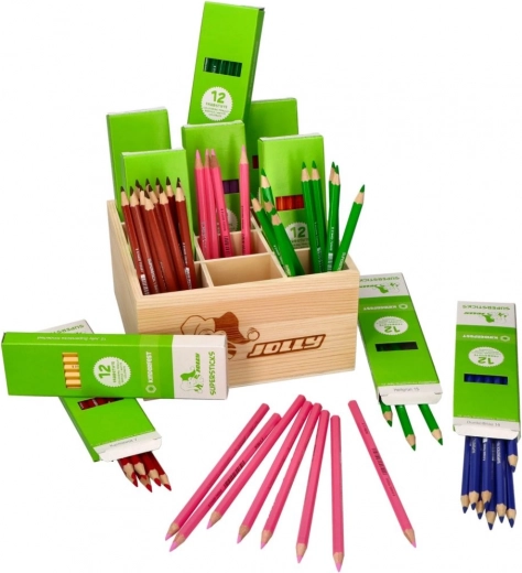 Supersticks Classic sont des crayons de couleur idéaux pour les petits et grands artistes. Dans cet ensemble regroupé, vous trouverez jusqu'à 144 crayons de qualité rangés dans une élégante boîte en bois.