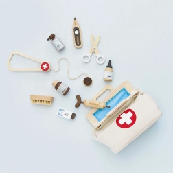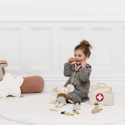 Cette trousse vétérinaire unique avec accessoires est idéale pour les petits vétérinaires curieux. L'ensemble contient 10 pièces fabriquées en bois naturel traité avec certification FSC, assurant une origine écologique et durable. Les enfants peuvent plonger dans le monde des soins aux animaux grâce à des outils révolutionnaires comme le stéthoscope, les ciseaux et la seringue. La trousse est conçue pour encourager la créativité et développer l'imagination.