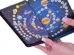 - Planche magnétique : Dimensions 31 x 15 cm, contient une disposition cosmique et des planètes.