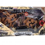Créez une scène militaire avec cet ensemble qui comprend des soldats et un hélicoptère dans le cadre d'une base militaire.