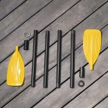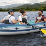 Le coffret comprend tout le nécessaire pour vos aventures aquatiques : bateau, paire d’avirons, pompe et kit de réparation. Le tout est facile à assembler et à transporter.