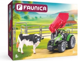 tracteur, remorque basculante, figurine de taureau, éléments de clôture et portail (enclos)