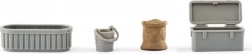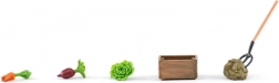 Une caisse, des légumes et une fourche enrichissent le jeu avec des éléments de récolte et de nourrissage. Les enfants entraînent leur motricité fine en triant et en transportant.