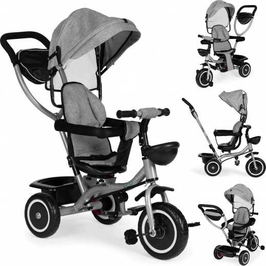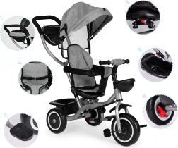 Le tricycle ECOTOYS évolue avec votre enfant – des premières sorties avec guidage parental jusqu’au pédalage autonome. Le siège pivotant permet une position face au parent ou face à la route, la capote pliable protège du soleil et du vent, et les ceintures 5 points avec arceau assurent la sécurité sur tous les terrains.