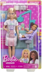 Découvrez le monde des soins dentaires avec Barbie dentiste et son patient ! Cet ensemble ludique comprend Barbie en blouse blanche et son jeune patient sur le fauteuil dentaire, prêts à explorer le fascinant univers du métier de dentiste.