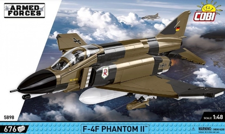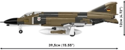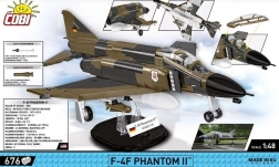 Le modèle COBI F-4F Phantom II est une maquette soigneusement réalisée qui restitue les détails du chasseur aux couleurs de la Luftwaffe. Le set est à l’échelle 1:48 et comprend des éléments imprimés, des pièces mobiles telles que les ailes, une verrière ouvrante, un train d’atterrissage amovible et des armes. Un support d’exposition et une plaque avec le nom du modèle sont également inclus.