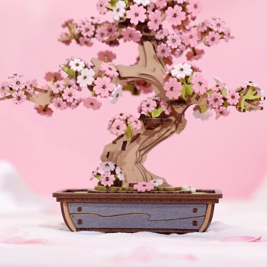 Ce bonsaï de sakura minutieusement détaillé reproduit fidèlement les délicates fleurs rose et blanches et la forme élégante d’un véritable petit arbre. L’assemblage est intuitif, toutes les pièces s’ajustent avec précision et le modèle final est stable et durable. Aucun besoin de colle ni d’outils – ouvrez la boîte et lancez-vous.