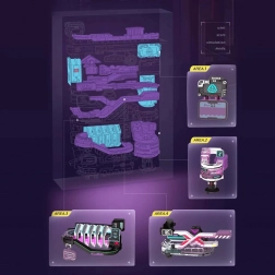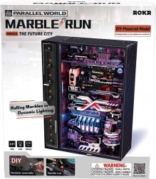 Créez chez vous un panorama SF palpitant avec des descentes rapides entre gratte‑ciel, conduites et usines. L’ascenseur automatique renvoie les billes au départ et l’éclairage LED néon donne à l’ensemble une atmosphère cyberpunk. D’une simple pression, passez du « jour animé » à la « nuit colorée ».
