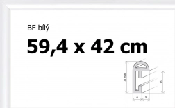 Le cadre contient du verre avec des bords polis d'une épaisseur de 2 mm et un support de base avec deux suspensions, permettant une suspension à la verticale comme à l'horizontale. Le profil du cadre en plastique a une hauteur de 21 mm et le format du cadre est conforme à la norme A2 (59,4 x 42 cm).
