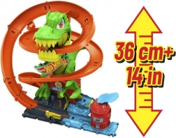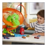 Préparez‑vous pour une course haletante dans Hot Wheels City ! Lancez la voiture en métal 1:64 incluse et foncez près du T‑rex. À chaque passage de la voiture, les yeux du dinosaure tournent jusqu’à ce qu’il soit finalement vaincu. Les enfants peuvent tester différents scénarios – d’un ravitaillement rapide à une victoire héroïque qui sauve toute la ville.