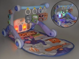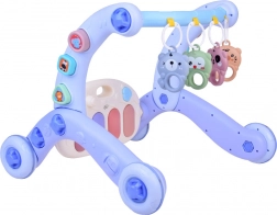 L’ensemble éducatif 3-en-1 évolue avec votre enfant : du jeu confortable sur une surface moelleuse décorée de petits animaux, à la découverte des sons avec le piano à mélodies et lumières, jusqu’aux premiers pas avec le trotteur pousseur stable. Les jouets suspendus colorés encouragent la préhension et la coordination œil-main, tandis que le trieur de formes avec blocs pastel développe la logique et la patience.