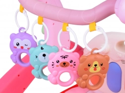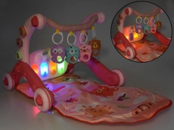 Le set multifonction 3-en-1 évolue avec votre enfant : du jeu confortable sur le tapis moelleux, à la découverte des sons sur le piano lumineux, jusqu’aux premiers pas avec le trotteur pousseur stable. Les jouets suspendus colorés et les blocs pastels du trieur stimulent la préhension, la coordination œil–main et la reconnaissance des formes et des couleurs.