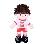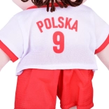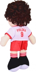Cette poupée toute douce aux couleurs de la Pologne deviendra immédiatement la favorite des petits joueurs et supporters. Le maillot stylé avec l’aigle sur la poitrine et le numéro « 9 », les petites chaussures de sport et les cheveux bruns donnent à la poupée un aspect authentique. Idéale pour les jeux de rôle, elle stimule l’imagination et la motricité fine.