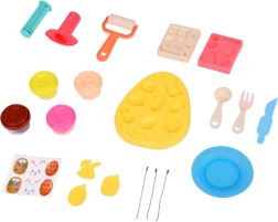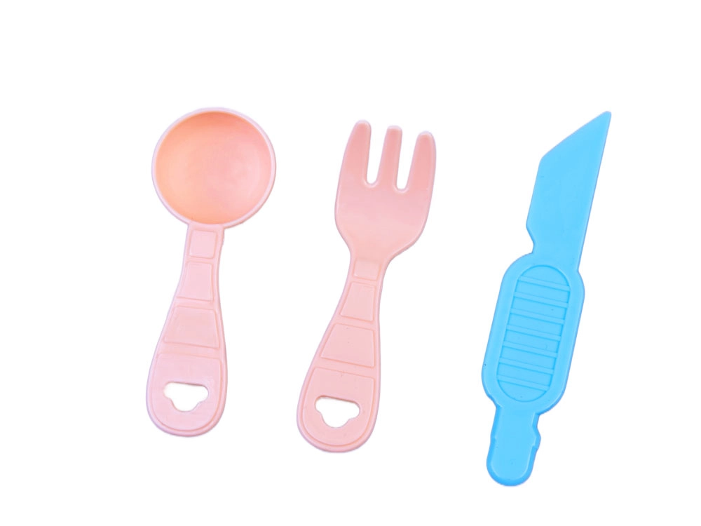 - Des accessoires – rouleau, petite assiette, couteau, fourchette et cuillère – parfaits pour simuler la préparation de plats.