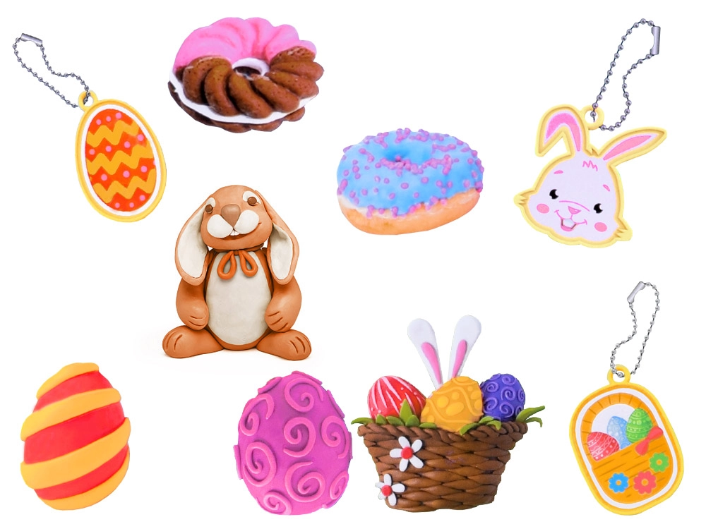 - Un grand œuf de Pâques pour imprimer différents motifs comme un lapin, une carotte, un œuf décoré, un poussin ou un petit panier.
