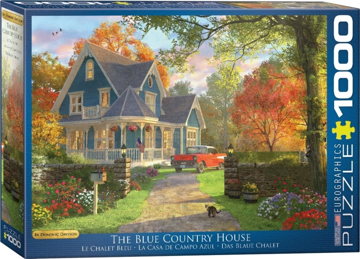 Puzzle Eurographics Maison de campagne bleue, 1000 pièces. Découpe irrégulière pour une difficulté accrue, dimensions assemblé env. 67,63 × 48,89 cm. Un excellent défi.