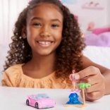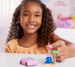 Entrez dans l’univers MINI BARBIE LAND – un lieu où les grands rêves prennent une taille mini. Cet adorable set propose un cabriolet au design soigné avec changement de couleur selon la température de l’eau, une mini-poupée BARBIE (env. 3,5 cm) et un panneau routier avec boîte aux lettres pour un jeu encore plus réaliste.