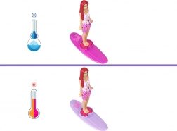 La petite voiture change de couleur dans l’eau froide et chaude et l’effet est reproductible à l’infini. La mini-poupée se plie à la taille, elle peut donc s’asseoir au volant. Le véhicule dispose de 2 sièges, ce qui permet d’agrandir facilement le jeu avec d’autres figurines de la série (vendues séparément). La poupée est fournie avec un socle en forme de cœur, qui peut être fixé à d’autres sets Mini Barbie Land.