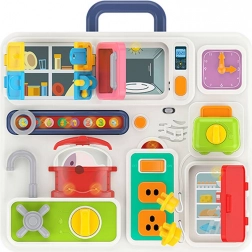 Le tableau de cuisine interactif Huanger est équipé de fonctionnalités telles qu’un réfrigérateur ouvrant, une cuisinière avec robinets, un micro-ondes avec minuterie et des prises pour brancher des appareils. Ces éléments offrent un divertissement illimité et stimulent le développement sensoriel de l’enfant. Le jouet permet aux enfants de rejouer des scénarios réalistes comme le lavage des produits, leur rangement au réfrigérateur et leur réchauffage au micro-ondes.