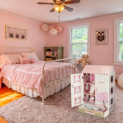 Les façades ouvrantes se ferment grâce à un aimant, la maison reste bien fermée et sert de belle décoration de chambre.