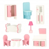 La fabrication de qualité en panneaux MDF assure stabilité et durabilité. Les neuf mini-meubles pastel peuvent être déplacés à volonté pour créer de nouvelles histoires avec des poupées, peluches et figurines.