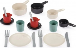 Ce set de vaisselle polyvalent comprend une poêle, des assiettes, des couverts, des tasses et des cuillères. Il est fabriqué en plastique résistant et est idéal pour la cuisson et le service des repas au quotidien. Deux variantes de couleur élégantes sont disponibles - noir et rouge, qui apporteront le style parfait à votre cuisine.
