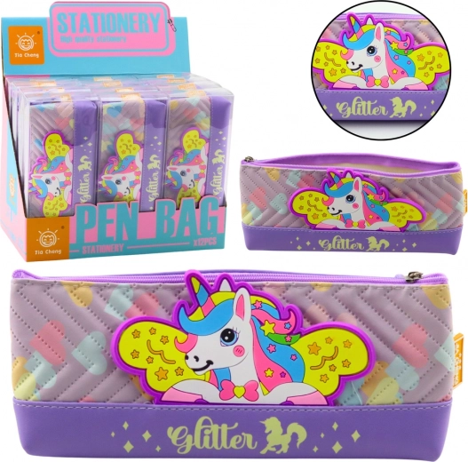 Magnifique trousse en forme de licorne, fabriquée en matériau semblable au cuir, parfaite pour les fournitures scolaires. Son aspect violet avec motif de licorne séduira chaque enfant.<9/p>