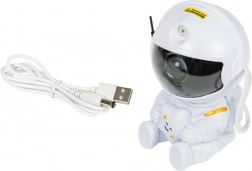 Le design de l’astronaute assis avec une tête entièrement rotative (360°) à fixation magnétique permet d’orienter la projection exactement là où elle brille le plus. Le projecteur est une excellente décoration pour le salon comme la chambre d’enfant et, grâce à l’alimentation USB, se branche facilement à un adaptateur, une powerbank ou un ordinateur.