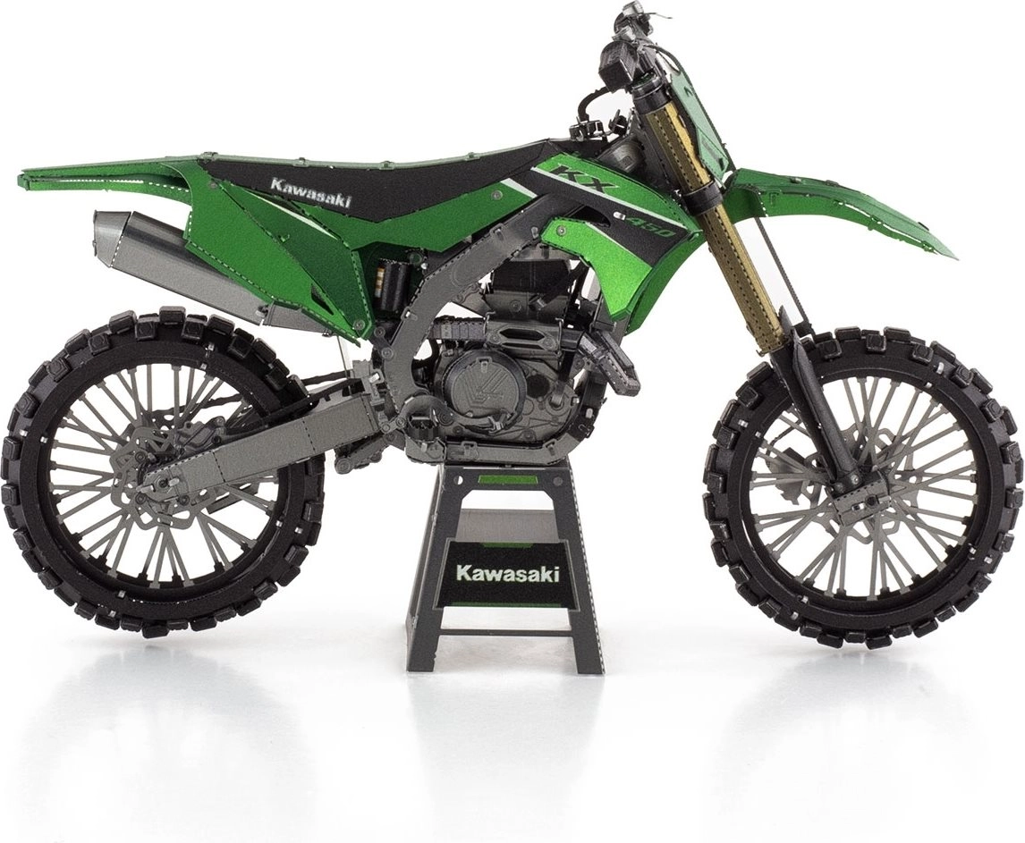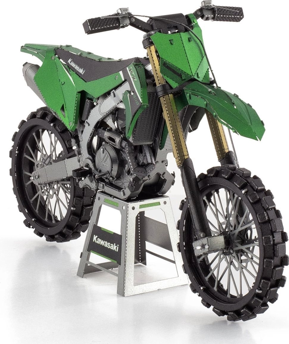 Le puzzle en métal offre un rendu réaliste grâce à une gravure laser minutieuse, faisant du modèle Kawasaki KX450 une pièce d’exposition captivante.