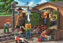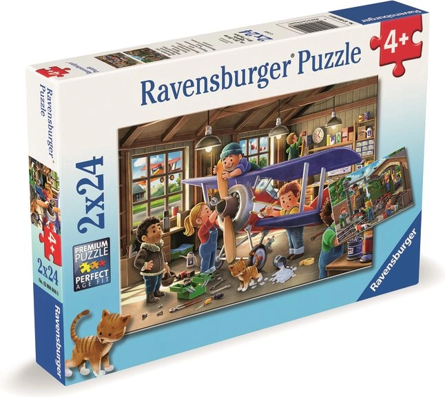 Ce double pack de puzzles pour enfants allie apprentissage et amusement. Les enfants apprécieront l’assemblage de deux scènes riches en détails : un modèle d’avion en cours de construction dans l’atelier et l’entretien d’une locomotive à vapeur au dépôt. Les pièces de qualité Ravensburger s’emboîtent parfaitement, sont résistantes et adaptées aux petites mains.