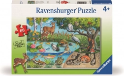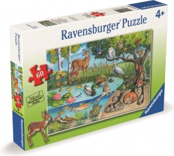 Avec ce puzzle Ravensburger, les enfants s’amusent tout en entraînant leurs compétences. L’illustration d’Ingrid Slyder présente le monde coloré d’un étang forestier, où vivent différentes espèces d’animaux – oiseaux, cerfs, chouettes, ratons laveurs, écureuils, poissons et tortues. Sous la surface, on découvre en plus la vie fascinante des lapins dans leurs terriers et un renard au repos.