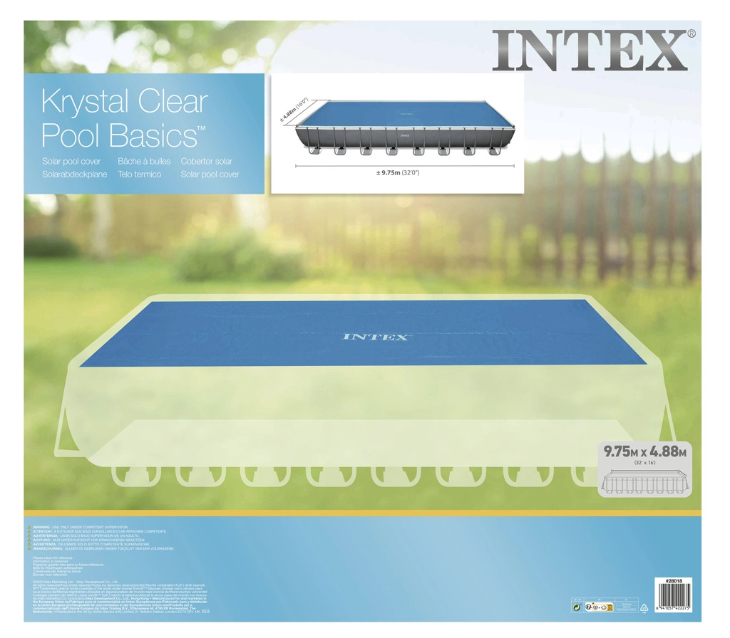 La bâche solaire Intex est un excellent choix pour maintenir la température de l’eau de la piscine et réduire l’évaporation. Cette bâche est conçue pour des piscines de 9,75 × 4,88 m, ce qui correspond aux dimensions 960 × 466 cm.
