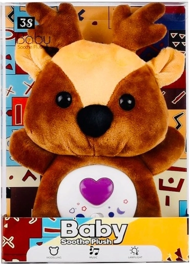Adorable petit renne avec effets lumineux et sonores, proposant des sons relaxants pour un apaisement en douceur et un endormissement facile des enfants. Idéal comme compagnon de nuit dans la chambre d’enfant.
