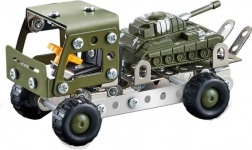 Ce kit métallique vous permet de créer une voiture militaire unique avec un char. Le set comprend une combinaison de pièces métalliques et d'accessoires en plastique, qui se connectent à l'aide de vis et écrous. Il est conçu pour être simple à assembler, amusant et stimulant à la fois :