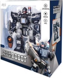 Découvrez un robot policier interactif d’environ 38 cm de hauteur, qui séduit par ses effets lumineux, ses sons et ses trois mélodies de danse. Grâce à la télécommande, vous contrôlez facilement l’avancement/recul, la rotation, le volume et les lumières. Il est équipé d’un bras robotique avec projectiles pour un jeu d’action et le développement de la coordination et de l’imagination des enfants.