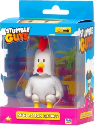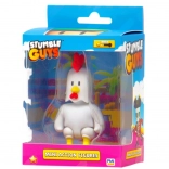 Mini figurine d’un coq blanc avec crête rouge et pattes jaunes dans une boîte colorée, idéale pour tous les joueurs de Stumble Guys.