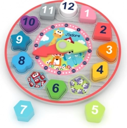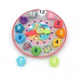Son design joyeux et coloré attire même les plus petits. L’insertion des bonnes pièces stimule la pensée logique et la concentration, tandis que la rotation des aiguilles (si elles sont incluses) facilite la compréhension du principe de la mesure du temps.